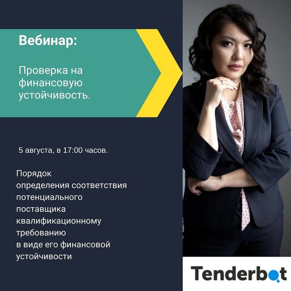 На вебинаре вы узнаете: 1️⃣ К каким видам госзакупок предъявляются требования в виде финансовой устойчивости. 2️⃣ По каким критериям определяется финансовая устойчивость. Как она просчитывается. Для более подробной информацией обращайтесь по телефонам: , Наш сайт : Мы в Instagram: tenderbotkz Наш Телеграм-канал: