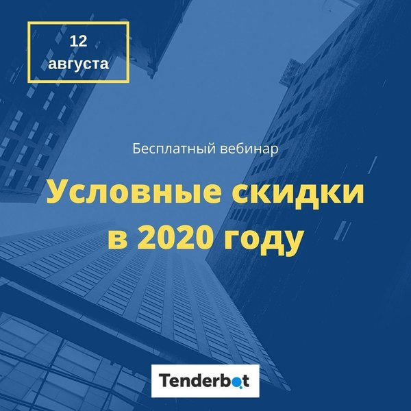 Приглашаем вас на бесплатный онлайн вебинар на тему : Условные скидки в 2020 году. Время проведения -12 августа в 17:00 на платформе Zoom На вебинаре вы узнаете: 1️⃣ Что такое условная скидка? 2️⃣ Как можно получить условную скидку? 3️⃣ Как условная скидка влияет на итоги тендера? переходите по ссылке! Подключиться к конференции Zoom Идентификатор конференции: 936 3947 6186