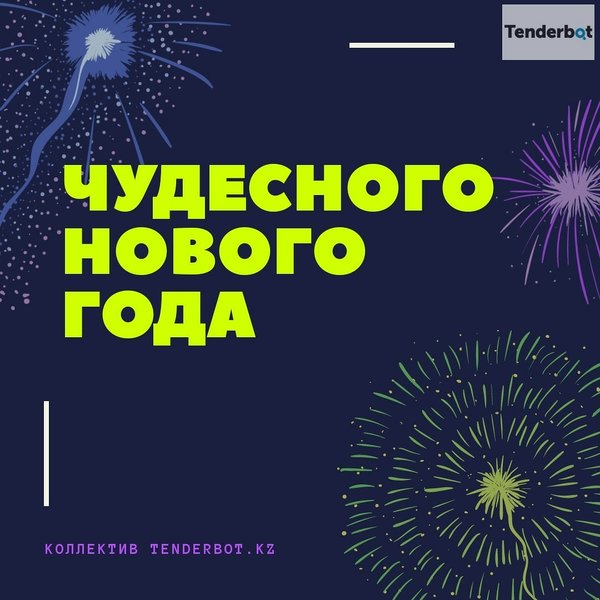 Уважаемые клиенты, от всей души поздравляем всех вас с Новым годом! Нет лучшего подарка для нас, чем видеть вас довольными и счастливыми. Желаем вам воплощения поставленных целей, вдохновения, тепла, радости и больше запоминающихся событий! Не будем останавливаться на достигнутом, ведь в новом году нас ждет только удача и успех. С праздником! Коллектив Tenderbot.kz