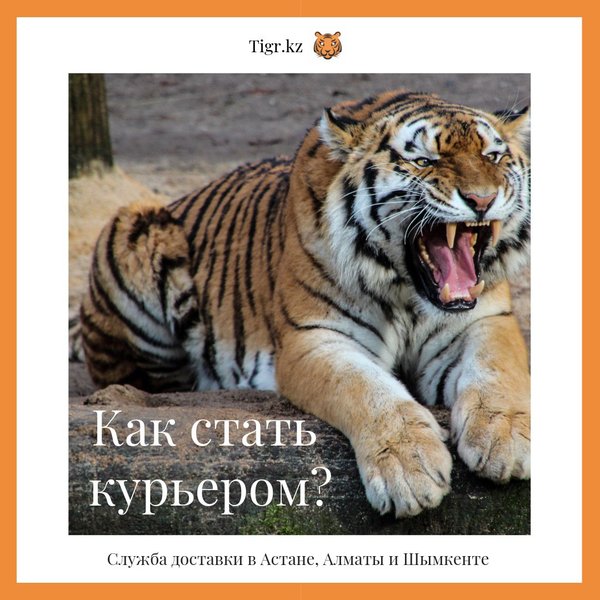 Курьерская служба экспресс-доставки «Тигр». Мы решаем логистические проблемы: — Доставляем заказы с интернет-магазинов, — Сотрудничаем с сервисами по доставке цветов, еды и подарков. — «Тигр» подбирает курьеров к каждому заказу индивидуально. — Наши пешие курьеры доставят заказ быстро и дешево, за 2—3 часа внутри города. Срочную доставку, в течение часа, поручим курьеру на машине. — Мы доставляем посылки день в день, в среднем за 3 часа внутри города. — — Но вы также можете заказать доставку к определенному времени. Закажи доставку на Tigr.kz
