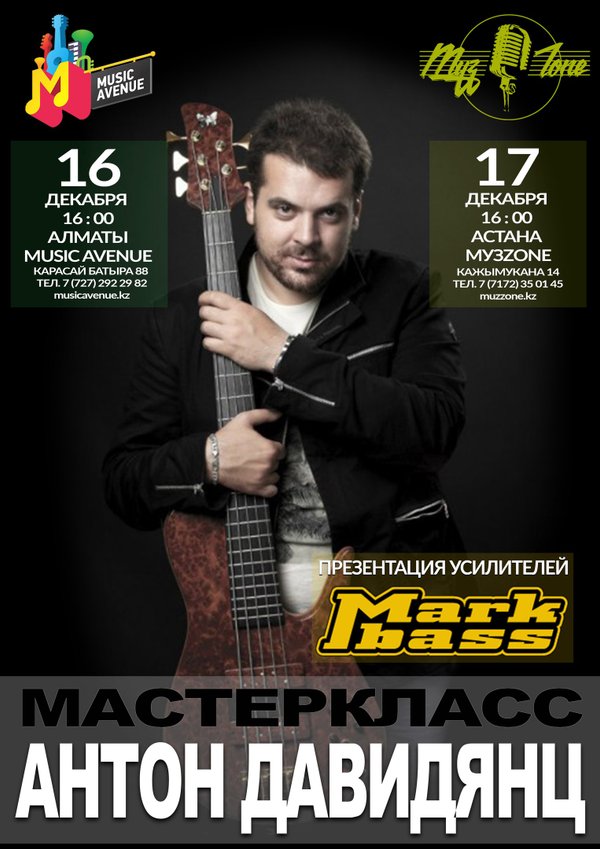 Друзья, всех приглашаем 17 декабря на мастеркласс бас-гитариста Антона Давидянца, начало в 16:00!! Ждём всех!!!