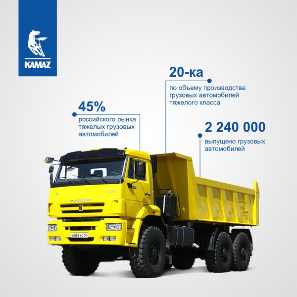 меньше 8 тонн, резко встал вопрос об организации выпуска новых большегрузных автомобилей. Однако ни один из существующих автозаводов страны не смог бы справиться с этой задачей. В результате ЦК КПСС и Совет Министров СССР приняли Постановление № 674 от 14 августа 1969 года «О строительстве комплекса автомобильных заводов в Набережных Челнах Татарской АССР». Набережные Челны были выбраны не случайно. Географическое положение города как нельзя лучше подходило для реализации проекта, в первую очередь, благодаря непосредственной близости железной дороги. Несомненным преимуществом стало и наличие крупнейшей в Татарской АССР и Советском Союзе многопрофильной строительной организации – «Камгэсэнергострой». В начале 1970 года «КАМАЗ» был объявлен Всесоюзной ударной комсомольской стройкой. Предприятие возводилось силами приехавших со всех уголков страны специалистов. Комплекс заводов Камского автогиганта раскинулся на территории в 57 квадратных километров. Будущий завод обеспечивался самым современным по тем временам технологическим оборудованием, которое было поставлено из Европы, США, Канады, и Японии. 16 февраля 1976 года с главного сборочного конвейера сошёл первый грузовик. Одновременно со строительством и становлением автозавода решались коммунальные проблемы. Сотням тысяч людей «КАМАЗ» обеспечил комфортабельное жилье, современные учебные заведения, детские сады, медицинские учреждения, многочисленные объекты культуры, спорта, отдыха и досуга. Из маленького городка с населением 27 тысяч человек Набережные Челны выросли во второй по величине город республики, после Казани. Сегодня в городе проживает 534 тысячи человек. В декабре прошлого года градообразующее предприятие, ведущий российский производитель грузовых автомобилей отметил 50-летие со дня основания. Сегодня ПАО «КАМАЗ» – признанный лидер российского рынка не только по поставкам продукции, но и по освоению новейших технологий. За эти годы выпущено более 2,3 млн автомобилей. КАМАЗы эксплуатируются более чем в 80 странах мира. Вектор развития компании отвечает актуальным мировым трендам в машиностроении. «КАМАЗ» – на главных ролях в развитии газомоторной темы, «КАМАЗ» – российский лидер в разработке интеллектуальной беспилотной автотехники и электробусов, в числе первых – в вопросах цифровизации производства и других важных для страны проектах. Компания активно занимается реинжинирингом производства: приобретается новое оборудование, в числе которых роботизированные линии и современные станки. В своем стремлении соответствовать ожиданиям потребителей и предвосхищать их специалисты «КАМАЗа» постоянно работают над развитием модельного ряда продукции. Главная цель преобразований – создание современного производства, интегрированного в сообщество ведущих автопроизводителей, где выпускается продукция мирового уровня. Одним из таких продуктов стал современный магистральный тягач поколения К5 с комфортабельной кабиной и мощным двигателем Р6 – КАМАЗ-54901, который компания вывела на рынок в 2020 году.