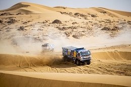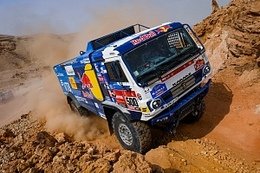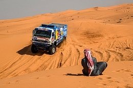 й ад», «организаторы должны хорошенько подумать в следующий раз, прежде чем выбирать такой маршрут», «это сумасшествие ехать всю дорогу по скалам, это не ралли-рейд, а самый настоящий трофи по камням». Недовольству некоторых пилотов не было предела, но нашлись и те, кто выразил сожаление, что таких экстремальных этапов на «Дакаре» крайне мало. Одним из таких оказался Андрей Каргинов. Череда откровенно убойных и относительно спокойных спецучастков напомнила плохого и хорошего полицейского. Вот и сегодня, словно желая задобрить переживших тяжёлый день спортсменов, организаторы предложили им захватывающий своими красотами дух маршрут с многочисленными холмистыми участками и песчаными дорожками. Всё же «Дакар» – это не только испытание на прочность и езда на результат, но и удовольствие от того, что ты оказываешься на финише очередного этапа, каким бы изматывающим он ни был. Дистанция ралли-марафона пройдена на 75%. Но, несмотря на тысячи километров позади, в генеральной классификации царит острая борьба за подиум во всех категориях. Экипажи «КАМАЗ-мастер», занимающие три первые позиции в грузовом зачёте, ежедневно испытывают серьёзное сопротивление со стороны соперников. И если Дмитрий Сотников оторвался на комфортные для себя 110 минут от идущего четвёртым чеха Алеша Лопрайса, то сражение за третью строчку продолжается в ежедневном режиме. Цена 17 минут от Айрата Мардеева – всего одна остановка для замены колеса. Вместе с племянником шестикратного победителя «Дакара» претендует на пьедестал и ещё один чешский пилот Мартин Масик, накануне выигравший свой первый в карьере этап на ралли-марафоне. Нащупав высокий темп, гонщик из команды Big Shock Racing готов был атаковать и в среду. За три оставшихся до окончания «Дакара-2021» спортивных дня ему необходимо отыграть у россиянина 36 минут и рассчитывать на потерю времени тем же Лопрайсом. Задача не из простых, но это «Дакар», где всё может перевернуться с ног на голову за считанные секунды. Всё это прекрасно понимает штаб команды «КАМАЗ-мастер». Временной задел позволяет выстраивать тактику экипажей таким образом, чтобы свести риск к минимуму и довезти результат до Джидды, достигнув поставленных перед гонкой целей. В стартовом листе десятого этапа четыре российских грузовика разделяли между собой всего две минуты, что позволяло проехать всю 342-километровую дистанцию в непосредственной видимости друг друга. Гоночный трек повел караван ралли из высокогорного (с пиковым значением 2550 метров над уровнем моря) северо-западного района Саудовской Аравии к плато, расположенному в стороне от вулканического поля Харрат-эль-Увайрид. Здесь, в западной части Аравийского полуострова в 120 км от Красного моря, предположительно 1400 лет назад произошло извержение вулкана, оставившее после себя заметный след на оранжевых песках. Навигационные ловушки, предложенные для штурманов сегодня, не оказались крепким орешком для лидеров грузового зачёта. 30-секундные стартовые разрывы, гарантировавшие большие облака пыли, затрудняли обгоны, поэтому на финише обошлось без сюрпризов. На протяжении всей дистанции, состоящей из двух зон нейтрализации (или трансферта, как в этом году их называют на «Дакаре») не позволил к себе приблизиться Мартин Масик, выигравший второй этап подряд – 3 часа 13 минут 2 секунды. Быстр