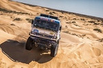 Складывалось ощущение, что эта естественная природная «наждачка» составляла значительную часть дистанции первого этапа. Многие пилоты сбавляли скорость до минимума и всё равно не смогли избежать проколов, а девятикратный чемпион мира по классическому ралли француз Себастьян Лёб и вовсе поменял три колеса на своём внедорожнике. Каменные джунгли на западной окраине Саудовской Аравии ещё долго обсуждали на бивуаке. Как и непроходимые дебри в виде кустарников и деревьев, через которые с трудом проезжали представители грузового зачёта. Сухие и цепкие, как багор, ветки буквально раздирали кузова машин, а некоторые экипажи, пробираясь через узкие туннели, лишились лобовых стёкол. Такое обилие деревьев объясняется легко, если посмотреть на конечную точку этапа — город Бишу в одноимённой провинции на юге королевства. Местные плодородные земли имеют важнейшее сельскохозяйственное значение для страны. Водные ресурсы Красного моря, а также крупное вади (арабское название сухих русел рек), растянувшееся на десятки километров, стали плацдармом для выращивания трёх миллионов пальм и других деревьев. Самая длинная долина на Аравийском полуострове стала приютом для каравана ралли-марафона на один день, после чего вереница спортивных экипажей отправилась на восток – в Вади-эль-Давасир, хорошо знакомый ещё по прошлому году. Утром перед стартом второго этапа, который прошёл в смешанном режиме, организаторы пересчитали время вчерашнего спортивного дня. Но на положении в табели о рангах это не отразилось. Первая четвёрка на грузовиках вышла на дистанцию позади 25 внедорожников с интервалом в минуту: во главе колонны покорять 457 километров спецучастка отправился лидер общего зачёта среди грузовиков Дмитрий Сотников из «КАМАЗ-мастер», следом поехали чех Алеш Лопрайс, россиянин Антон Шибалов, а также белорус Сергей Вязович. Петляющий трек открыл первые на «Дакаре-2021» дюны, перемежающиеся с быстрыми песчаными долинами и плато. И здесь наравне с высоким уровнем пилотирования на первый план выходил опыт штурмана найти верное направление к контрольной точке. 30-километровая дюнная секция на первой трети пути и пересохшие русла рек, попавшиеся участникам гонки в середине дистанции, немного сдерживали мощные двигатели многотонных машин. И только во второй части трассы, где начались извилистые песчаные дорожки внутри огромных каньонов, образованных горами из чёрного камня, скорости увеличились. Потрясающий пейзаж наверняка оценят зрители, тогда как экипажи целиком были сосредоточены на гонке. Быстрее всех в грузовом зачёте в гонке оказался экипаж Дмитрия Сотникова. Все 10 контрольных точек, как и финишную черту, он преодолел с первым результатом и выиграл свой второй этап на «Дакаре-2021», потратив 4 часа 37 минут 44 секунды. Машине с бортовым номером № 507 лишь на одном участке пришлось потерять немного времени при попытке заезда на дюну. Дмитрий Сотников, пилот экипажа № 507: «Через три километра после старта начались серьёзные дюны, и мы старались не форсировать их. Даже не удалось с первого раза взять одну из дюн, пришлось спуститься и повторить манёвр. Видели, как многие джипы висят на вершинах, мало кто оказался готов к дюнам. Они были очень рыхлыми и пухлыми, и мы старались проехать надёжно. После 170 км пошли более скоростные дороги. В зоне н