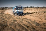 жёлые – возникающая на бугристой поверхности сильнейшая тряска изматывала экипажи и разрушительно действовала на технику. Достаточно много было и быстрых участков. Также прокладчики маршрута обеспечили попадание участников гонки в несколько «песочниц». Долгожданный финиш ждал экипажи в особенно красивой в это время года астраханской саванне. Сводки с трассы пестрели сообщениями о частых остановках. Поэтому предусмотренная организаторами гонки точка сервиса на 150-м километре маршрута пришлась очень кстати многим участникам. Не обошлось без технических проблем и у камазовских экипажей. На машине Айрата Мардеева пришлось менять турбину. У Эдуарда Николаева были проблемы с тормозами. Экипаж Андрея Каргинова останавливался, так как был вынужден менять колёса. Андрей Каргинов, № 301, пилот команды «КАМАЗ-мастер»: «Наконец-то началась настоящая гонка. Из-за пандемии все засиделись дома. Чувствуется, все соскучились по соревнованиям. Астраханские трассы, конечно, примерно знакомые, не первый год по ним ездим, поэтому мы знали, что этап будет непростым, и надо правильно рассчитать силы. Много ухабов, трамплинов, скрытых рытвин. При этом трасса провоцирует ехать очень быстро. Учитывая долгий период простоя, старались ехать аккуратно, чтобы не допустить ошибок и не потерять машину. Важно было найти темп, вкатиться, вспомнить. Подвеска сильно перегревалась, и эффективность работы снижалась. Спасибо организаторам за корректный роад-бук. Мы довольны первым днём, но впереди ещё два дня гонки». Сергей Куприянов, № 305, пилот команды «КАМАЗ-мастер»: «Сегодня был очень интересный спецучасток, как раз то, что нужно для нашей машины, потому что на этой модификации отлично сбалансированная подвеска. К тому же сегодня рыхлый грунт был практически на всём спецучастке, это то, что нужно для газодизельного автомобиля. Первое время мы немного осторожничали после вчерашнего дня, но где-то к 60-му километру уже хорошо вкатились и весь спецучасток проехали на одном дыхании, нигде не останавливались. Понимаем, где в будущем, не прямо сейчас, мы можем добавить, поэтому результатами очень довольны». Дмитрий Сотников, № 302, пилот команды «КАМАЗ-мастер»: «Стартовали третьими, впереди был джип Дениса Кротова, за ним грузовик Андрея Каргинова. Ушли на трассу через две минуты после Андрея. Но достаточно быстро к нему подъехали. Примерно на 80-м километре он нас пропустил, километров через 20 мы объехали Дениса Кротова. У них была заминка в навигации. После точки сервиса ехали уже в одиночестве. Это был прошлогодний спецучасток, много заросших следов и вторая половина проходила по очень плохо видимой дороге. В прямом смысле слова приходилось бороться со степью. Много живности — зайцы, лисы. Поэтому было нескучно». Айрат Мардеев, № 303, пилот команды «КАМАЗ-мастер»: «Стартовали неплохо, но скоро заметили, что не хватает мощности, что мотор едет тяжелее, чем в предыдущие дни. Думали, что это из-за грунта, трасса была реально сильно распахана. Но когда нас догнал Эдик, где-то на 76—80 километре, мы его пропустили. Я попробовал за ним подержаться, но почувствовал, что на «тягунах», где тяжёлый вязкий песок, он уезжает. Когда началось сильное бездорожье, вновь подъехали к Эдику. Понадеялись, что всё-таки проблема не в моторе — нормально ехалось, и тут же у нас пропал полностью 