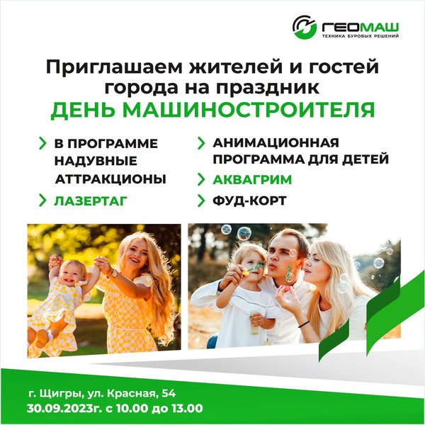 Дорогие гости и жители г.Щигры. Приглашаем Вас посетить праздник, посвященный Дню Машиностроителя. Ждем Вас 30 сентября по адресу ул.Красная. 54