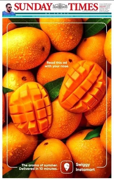 Думаем, на этой неделе достаточно наших кейсов ⤵️ ловите интересный кейс аромамаркетинга в Индии там сервис доставки еды Swiggy Instamart разместил рекламу с ароматом манго на первой полосе газеты. Теперь читатели Sunday Times of India смогут «прочитать рекламу носом» В общей сложности было выпущено 800 000 экземпляров и распространили его исключительно по Мумбаи. В Swiggy Instamart сообщили, что согласно их мониторингу кампания зашла целевой аудитории на ура Выбор на манго, кстати, пал не просто та Это самый популярный сезонный фрук… — Читать дальше