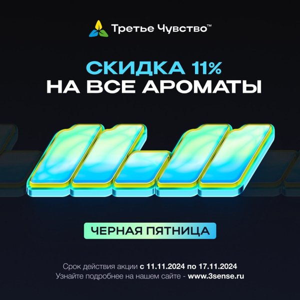 АКЦИЯ 11.11 – ЧЁРНАЯ ПЯТНИЦА Только до 17 ноября – успейте получить скидку 11% на коллекционные ароматы для бизнеса от «Третье Чувство»! Создайте уникальную атмосферу и подчеркните стиль вашего бренда с ароматами, которые произведут WOW-эффект на ваших клиентов! Ароматизируйте бизнес выгодно! С нашей акцией вы получаете премиальные ароматы по специальной цене – успейте забронировать свою скидку! Не упустите шанс сделать ваш бизнес запоминающимся!