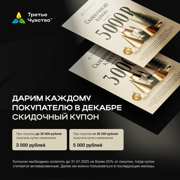 Декабрь — время волшебства и ароматов уюта, а мы, в «Третьем Чувстве», знаем, как добавить вашему бизнесу ту самую атмосферу, которую запомнят ваши клиенты. И у нас для вас подарок! Дарим скидочные купоны на ароматизацию вашего бизнеса! Совершаете покупку, а мы дарим: 3 000 рублей — если сумма покупки до 35 000 рублей. 5 000 рублей — если сумма покупки от 35 000 рублей. Купон для будущих ароматных решений Купон можно использовать до 31 января 2025 года. Оплатите им до 25% от стоимости следующей покупки. Зачем вашему бизнесу а… — Читать дальше