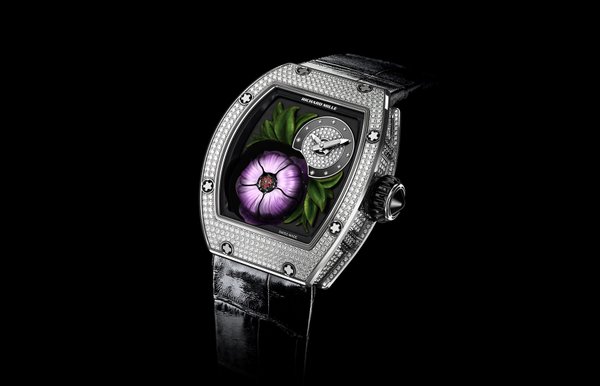 FLEUR Компания Richard Mille представила часы в характерном для себя корпусе с нехарактерным турбийоном. В нижней части циферблата RM Tourbillon Fleur расположена магнолия. Пять золотых цветочных лепестков, раскрашенных вручную, содержат в себе «парящий» механизм турбийона. Лепестки открываются каждые пять минут, а также по нажатию кнопки на отметке «9».