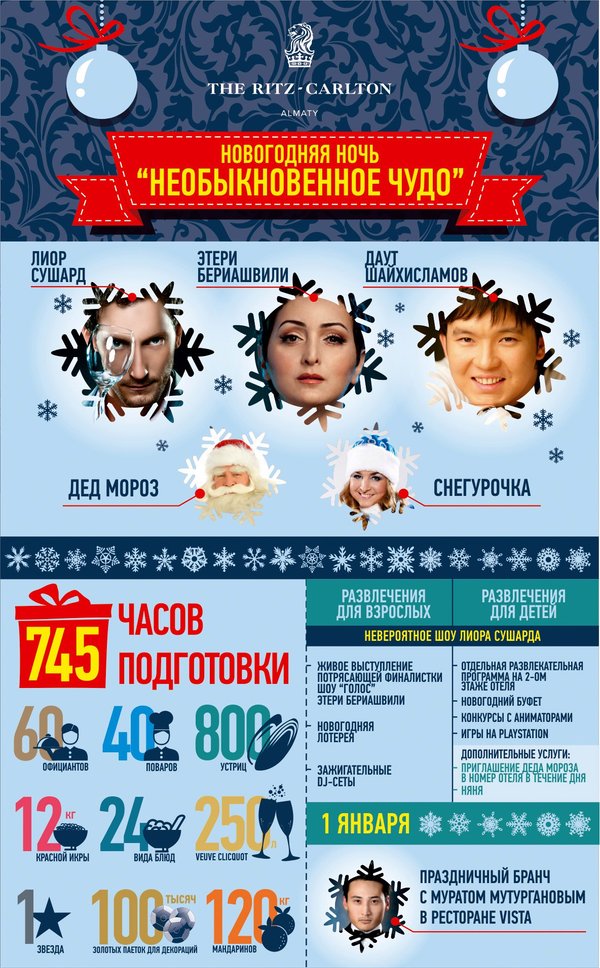 31 декабря The Ritz-Carlton, Almaty представляет шоу «Новогоднее чудо»! Эта ночь обещает стать приятнейшим завершением года. Знаменитые гости подарят самые захватывающие впечатления от развлекательной программы этого вечера: Лиор Сушард, обладатель необыкновенных способностей разума, представит гостям грандиозное представление, а Этери Бериашвили, финалистка шоу «Голос», создаст чарующую атмосферу вечера своим живым выступлением. Также гостей ждут традиционные, но не менее долгожданные Дед Мороз и Снегурочка, отличные музыкальные DJ-сеты, новог… — Читать дальше
