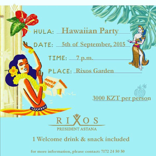 Не пропустите Гавайскую вечеринку в Rixos Garden! 5 сентября в 19:00 Вас ждут: зажигательные ритмы латиноамериканской музыки, кубинские сигары по специальной цене, мастер-класс от Маэстро Антонио и многое другое!