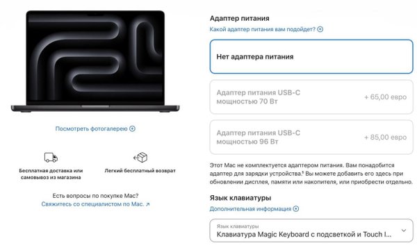 Анекдот: Apple убрала… зарядку из комплекта MacBook Pro 14» M5 в Европе — за нее придется доплатить отдельно 65 евро (6 тысяч рублей). Произошла забота об экологии.