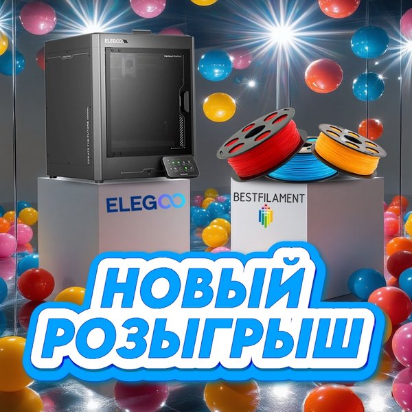 Смотри, что я напечатал на 3D-принтере! 3D PRIDE (12.08.2025): Начинаем новый розыгрыш! В этот раз мы приготовили для вас несколько подарков. Приз за первое место — 3D-принтер Elegoo Centauri Carbon (). Приз за второе место — 3 катушки PLA от Bestfilament () (цвета любые из наличия). Какие условия? Как всегда все просто: нужно подписаться на наш Telegram-канал (), нажать на кнопку «Участвую» и ждать розыгрыша! 29 августа в 16.00 мы случайным образом выберем двух победителей Доставка подарков в любой регион РФ за наш счет.