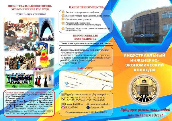 ияға шақырамыз: Біздің сайт: Instagram: IEK_official Facebook: @inginer2018 Онлайн қабылдау комиссиясы: Қабылдау комиссиясы:.. Байланыс телефондары:;; ҚҰЖАТТАРДЫ ҚАБЫЛДАУ 20 МАУСЫМНАН БАСТАЛАДЫ Мекен жай: Нұр-Сұлтан қ., Даулеткерей, 1 Аялдама: Медеу