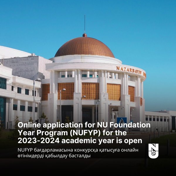 9 дейін) тіркелуге асығыңыздар. Толығырақ сайтында. RU Уважаемые абитуриенты! Информируем об открытии приема онлайн заявок на участие в конкурсе на Программу предуниверситетской подготовки Назарбаев Университета (NUFYP) на 2023—2024 академический год. Успейте зарегистрироваться до 30 ноября 2022 года (до 23.59 ч. по времени г. Астана). Узнайте подробности на.