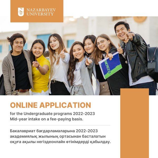EN Dear applicants, Please be kindly informed that the online application for Nazarbayev University Undergraduate programs for the 2023—2024 academic year is open from October 24, 2022! Hurry up to apply online! Learn more about the terms and deadlines on the website in the «Admission» section. KZ Құрметті талапкерлер! 2022 жылғы 24 қазанда Назарбаев Университетінің 2023—2024 академиялық жылына бакалавриат бағдарламаларына түсу конкурсына қатысу үшін онлайн өтінімдерді қабылдау басталды. Онлайн өтінімді беруге асығыңыздар! Қабылдау шарт… — Читать дальше