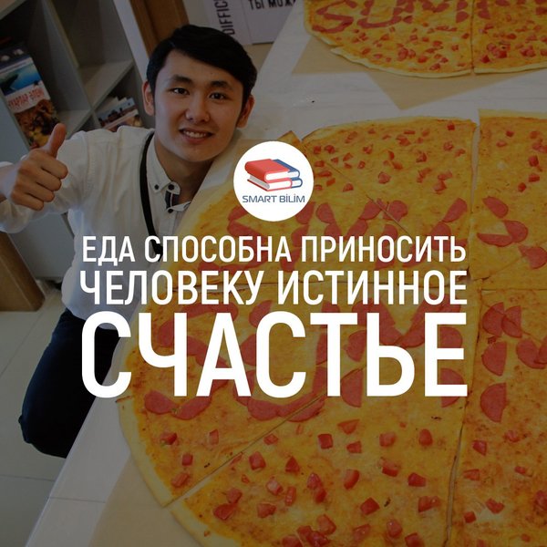 Британские ученые пришли к выводу, что еда способна приносить человеку истинное счастье. Всем известно, что у голодного человека часто плохое настроение, но как только он поест — настроение улучшается. Дорогие наши подписчики, питайтесь правильно и вовремя! Не грустите и всегда улыбайтесь) Эта фотография была запечатлена в июне, когда мы проводили ежегодный лагерь Smart Summer City. А это один из наших преподавателей — Алишер ағай. _____