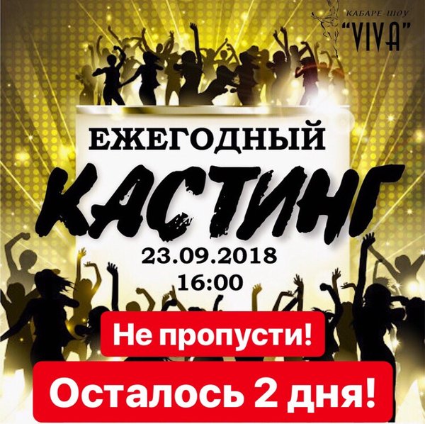 Долгожданный ️Ежегодный ️Уже традиционный ️ Сентябрьский КАСТИНГ танцоров в коллектив Кабаре-шоу VIVA!!! _____________________________________________________ дата: 23 сентября 2018!