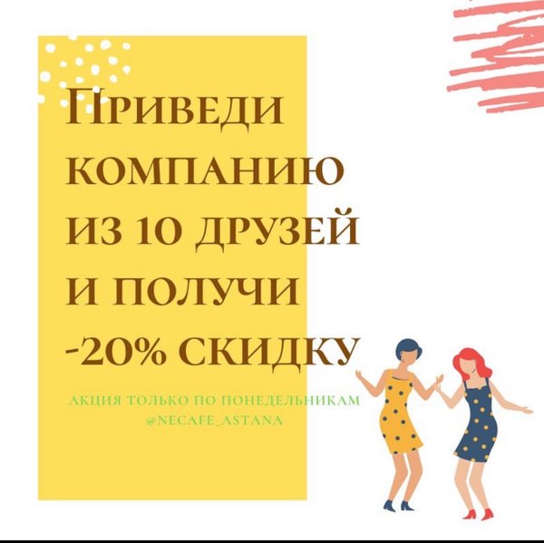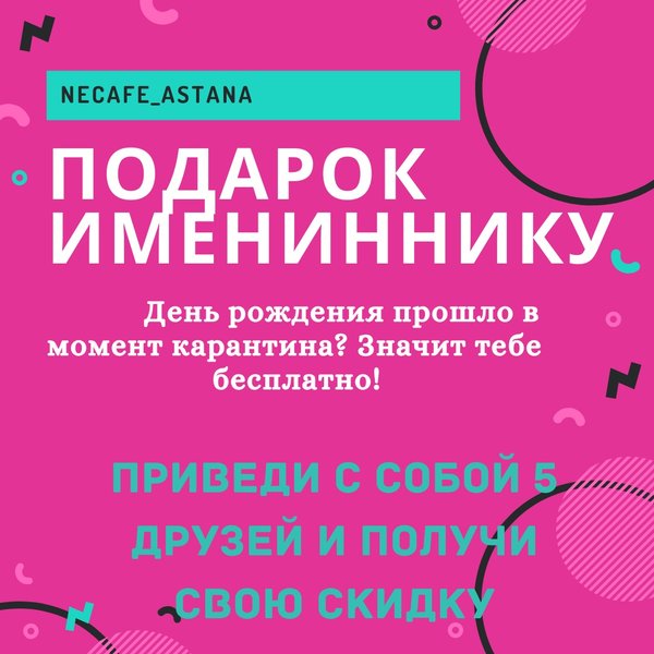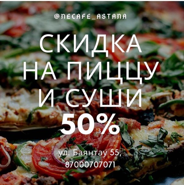 Заманчивое предложение только в @necafe_astana! Приходите к нам, мы всегда вам рады ————————————————— Адрес: ул. Баянтау 55 (Жумабаева-Момышулы) Телефон:,