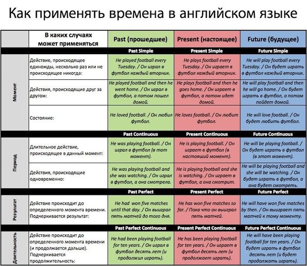 Все 16 времен английского языка с формулами глаголов и пояснениями