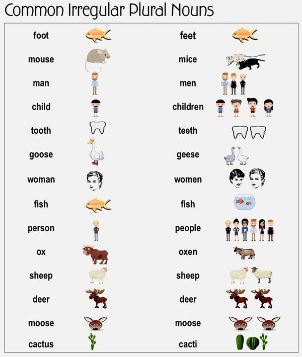Самые распространенные существительные нерегулярного множественного числа (irregular plural nouns)