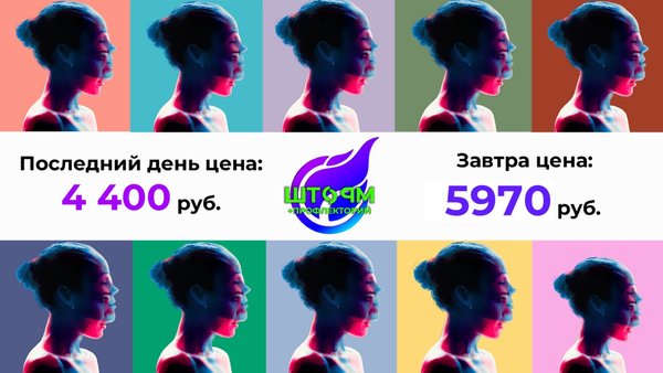 у в ТГ с видеозаписью ВСЕХ уроков на полгода! (Особенно АКТУАЛЬНО для тех, кто не может присутствовать лично!) По промокоду ШТОРМ5 ️ стоимость участия для 1 человека от 1164₽ (1ый платеж БЕЗ переплат!) ДОЛЯМИ или 4655₽ СРАЗУ! А еще выгоднее группой из 4 человек, тогда на каждого -25%, это всего 3493₽ Место проведения: Новосибирск, фк EUROPA, Кирова, 113 8:30 - 16:00 ____________________________ ВАЖНАЯ ИНФОРМАЦИЯ! В среду регистрация ЗАКРЫТА! Успеть забрать ️