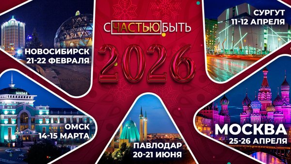 Проект #сЧАСТЬЮбыть открывает РЕГИСТРАЦИЮ! Невероятные дни, демонстрирующие новейшие тенденции и востребованные направления, которые откроют двери на следующий этап твоей карьеры! Новосибирск 21—22 февраля 2026 Омск 14—15 марта 2026 Сургут 11—12 апреля 2026 МОСКВА 25—26 апреля 2026 Павлодар 21—22 июня 2026 промокод* ЗИМАВМ * действует до 3 января и на ограниченное кол-во заказов _______________________ Получи опыт и первоклассное образование, которое дает уверенность в карьере, квалификацию, репутацию и рост.