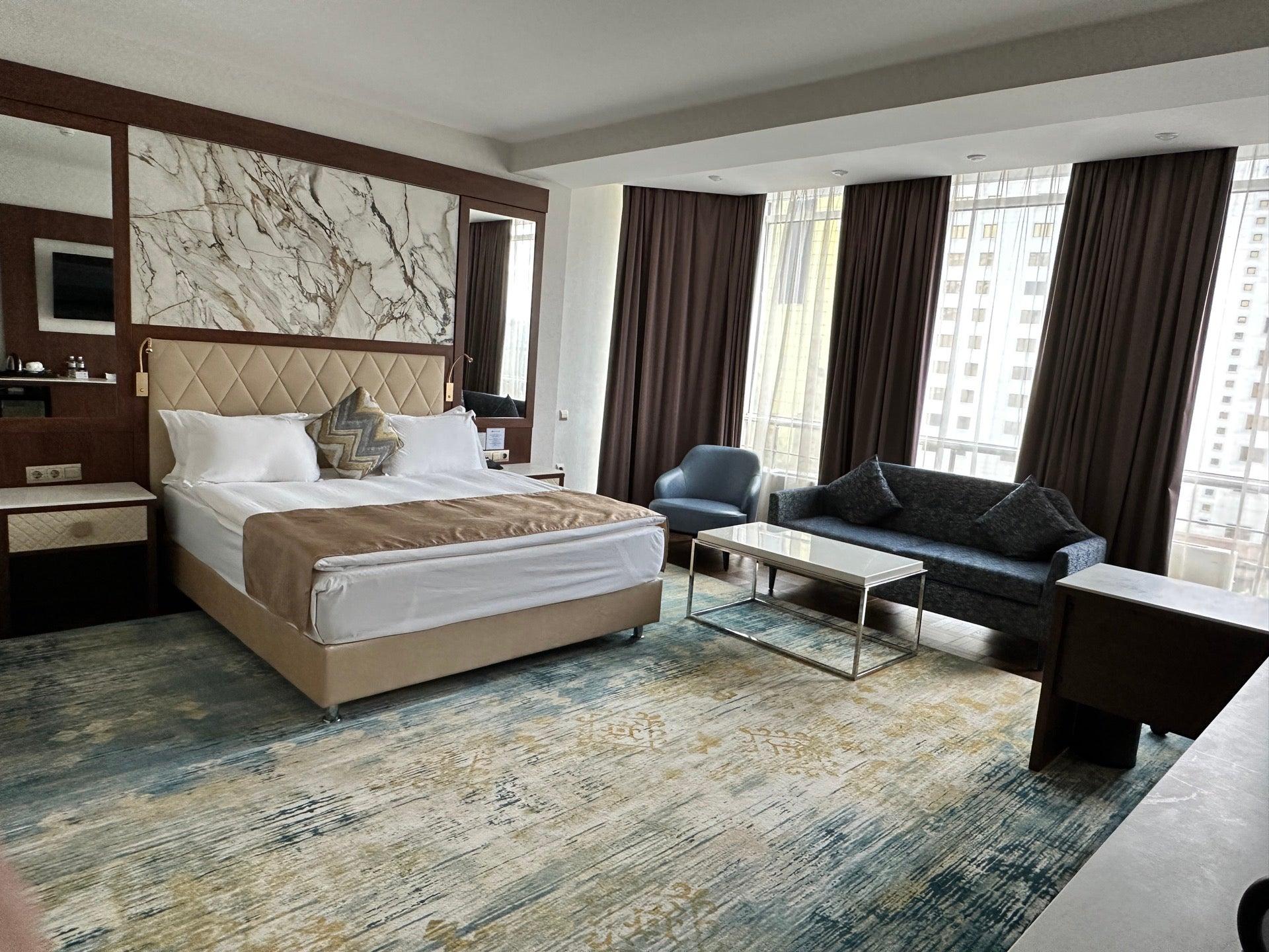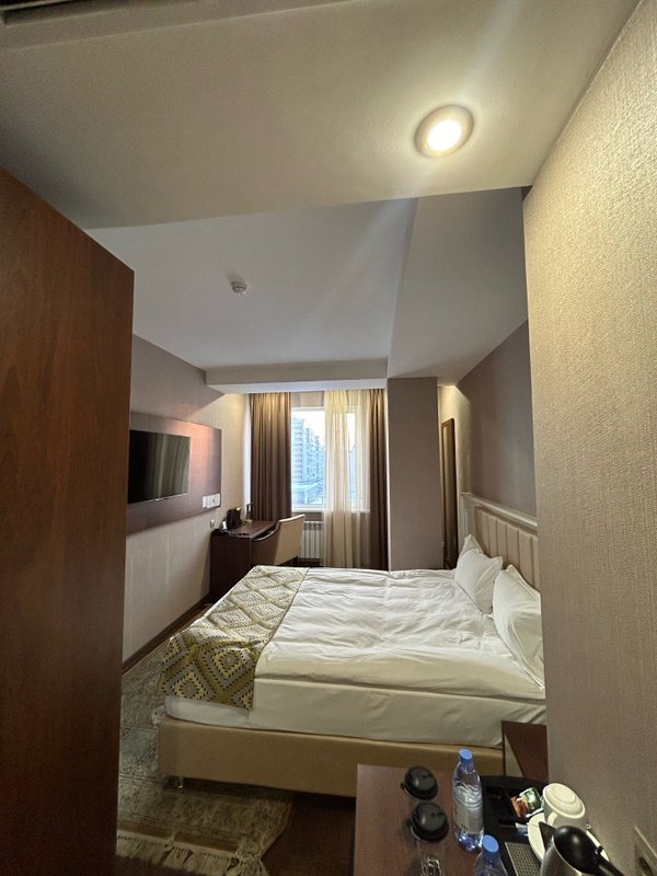 Не плохой отель, но с поправкой на среднеазиатский сервис. При заселении был овербукинг, дали двум мужикам семейную кровать. Номер за сутки ни разу не убрали, из окна сифонит, ресторан внизу никакой