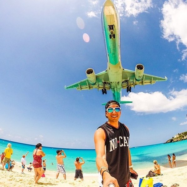 «Самым экстремальным в мире пляжем» называют пляж Махо на острове Сен-Мартен в Карибском море. Самолёты, прилетающие в местный аэропорт, заходят на посадку прямо над морем и пролетают практически над головами купающихся.