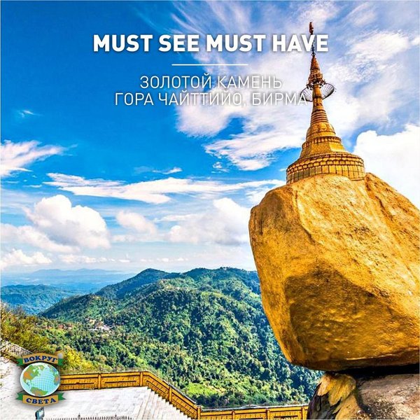 олотой камень, гора Чайттийо, Бирма. В нашем интересном мире существуют сотни тысяч красивых, удивительных мест, которые нужно непременно посетить. Золотой камень в Бирме — яркий тому пример. Он расположен на краю полуторакилометровой горы и кажется вот-вот упадет вниз, ведь его можно даже слегка раскачать! Однако этого не происходит уже около девяти столетий. Тот факт, что камень бросает вызов закону гравитации, буддисты сочли за знак, покрыли его золотом и построили сверху пагоду. __________________ Информацию по турам и новым предложениям у… — Читать дальше