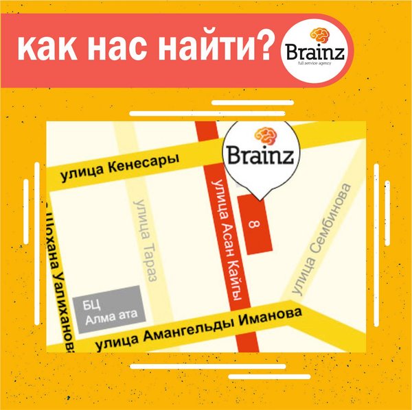 Всё ещё не знаете как до нас доехать? Наш офис находится по адресу: Асан кайгы 8, на пересечении улиц Кенесары и Иманова, возле БЦ «Алма Ата». Наши контакты:,.