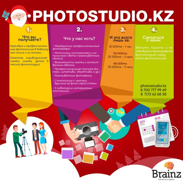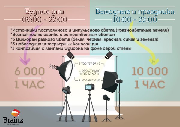 Агентство полного цикла «BrainZ» предлагает широкий спектр услуг в сфере производства: фото видео ивенты продакшн дизайн креатив. Для того чтобы воспользоваться нашими услугами, Вы можете связаться с нами удобным для Вас способом, для уточнения деталей. Вы можете оставить заявку на нашем сайте, позвонить по телефонам: или, написать на e-mail: info@brainz.kz или найти нас в любой социальной сети!