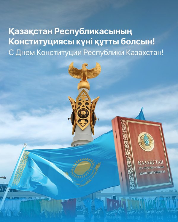 ның сәтті іске асуына шын жүректен тілектестік білдіреді! Мереке құтты болсын! ▪▪▪ Поздравляем с Днем Конституции Республики Казахстан! Этот день символизирует наше единство, стремление к справедливости и уважение к правам каждого гражданина. Основной закон страны является фундаментом, на котором строится наше государство, определяет права и обязанности всех нас. Конституция — это основа стабильности, процветания и развития нашего общества. Благодаря ей мы живем в мире и согласии, стремимся к новым высотам. «Казахтелеком» желает всем казахстанцам мира, добра, благополучия в семье! Пусть каждый день нашей жизни будет наполнен гордостью за страну, и пусть Конституция Казахстана всегда будет гарантом мира и процветания для всех граждан. С праздником!