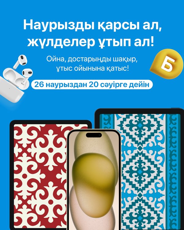 дық бонус қоры 10 000 және 20 000 бонус сертификаттары TV+ жазылымына промокод Көктемгі сынаққа дайын болыңыз! Nauryz challenge акциясының басталуына 9 күн қалды ▪▪▪ Встречаем Наурыз с новой акцией в приложении telecom kz! Участвуйте в Nauryz challenge от Казахтелеком и получите шанс выиграть крутые призы Акция стартует 26 марта, но уже до ее начала вы можете забрать дополнительный балл и выйти вперед в борьбе за призы. Для этого вам нужно с 17 по 25 марта зайти в приложении telecom kz и ознакомиться с правилами акции. За это нехитрое действие вы заработаете дополнительный балл. В Nauryz challenge мы разыграем: Смартфон iPhone 16 2 планшета iPad 10th gen 9 наушников AirPods 3 Полугодовые запасы бонусов Сертификаты на 10 000 и 20 000 бонусов Промокод на подписку TV+ Будьте готовы к весеннему вызову! До старта акции Nauryz challenge осталось 9 дней