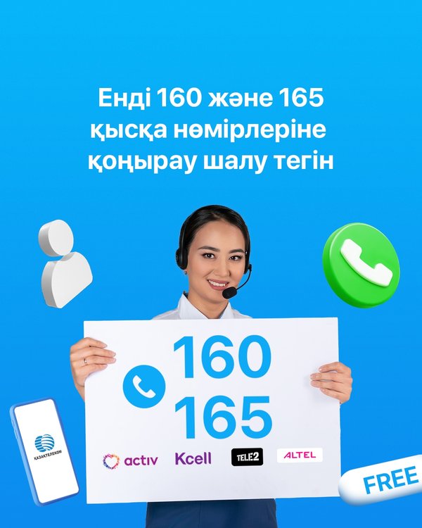 ров мобильных операторов activ, Kcell, Tele2 и ALTEL. Звоните на короткие номера 160 и 165, чтобы быстро и без лишних затрат узнать всё об услугах или решить возникшие вопросы Кроме того, вы можете воспользоваться онлайн-каналами: WhatsApp: Telegram: @TelecomKZBot приложение telecom kz Мы всегда на связи, чтобы помочь вам!