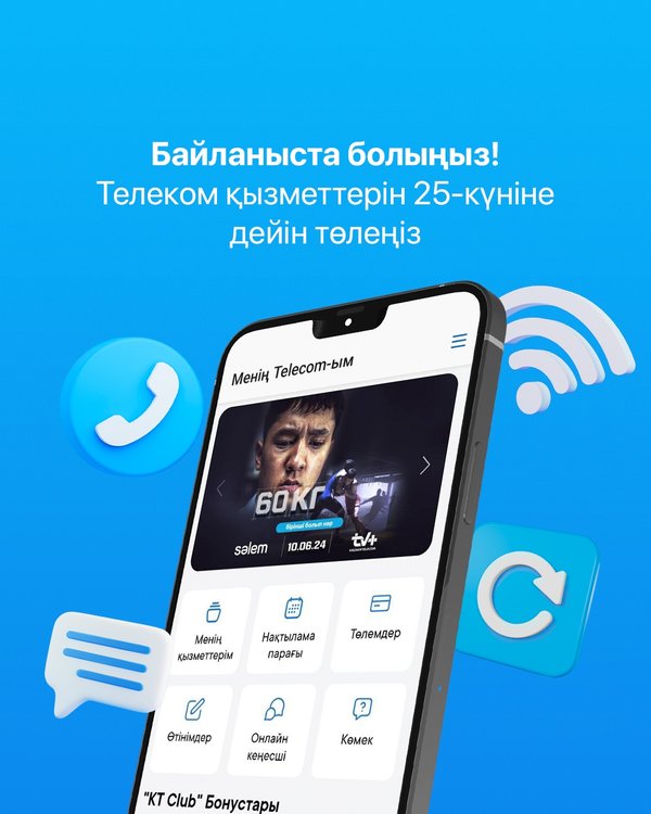 «Қазақтелеком» АҚ қызметтеріне 25-күніне дейін ақы төлеу қажеттігін еске саламыз telecom kz қосымшасында «Автотөлем» сервисін пайдаланыңыз. Бұл ыңғайлы тәсіл автотөлемді сіз қалаған күнге белгілеуге көмектеседі. ▪▪▪ Хотим напомнить, что оплатить услуг АО «Казахтелеком» необходимо до 25-го числа Воспользуйтесь сервисом «Автоплатеж» в приложении telecom kz. Этот удобный инструмент поможет настроить автоматическую оплату в удобный для вас день.