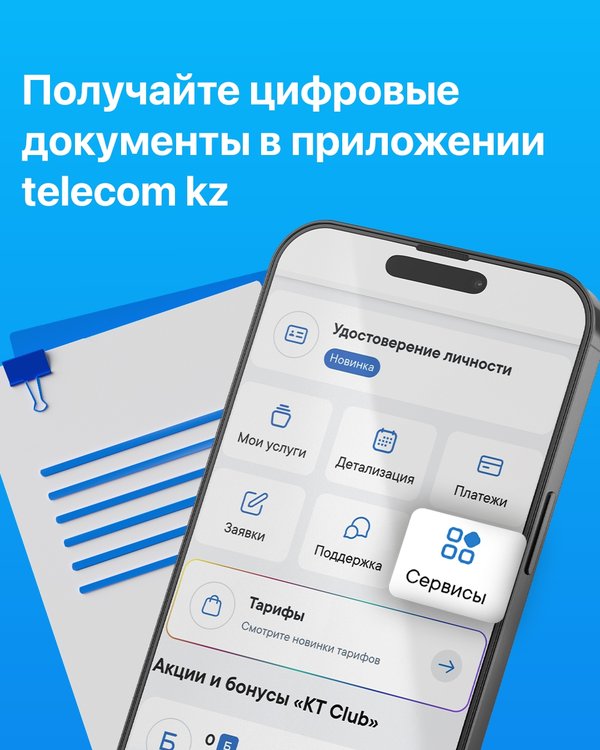 в telecom kz можно получить удостоверение личности и электронные медицинские справки Как это работает: Откройте приложение telecom kz На главной странице перейдите в раздел «Сервисы» Выберите «Гос.услуги» Подтвердите согласие через SMS на номер 1414 Получите доступ к цифровым документам и справкам из медицинских диспансеров Удобно. Быстро. Всегда под рукой Скачайте приложение telecom kz и моментально получайте цифровые документы!