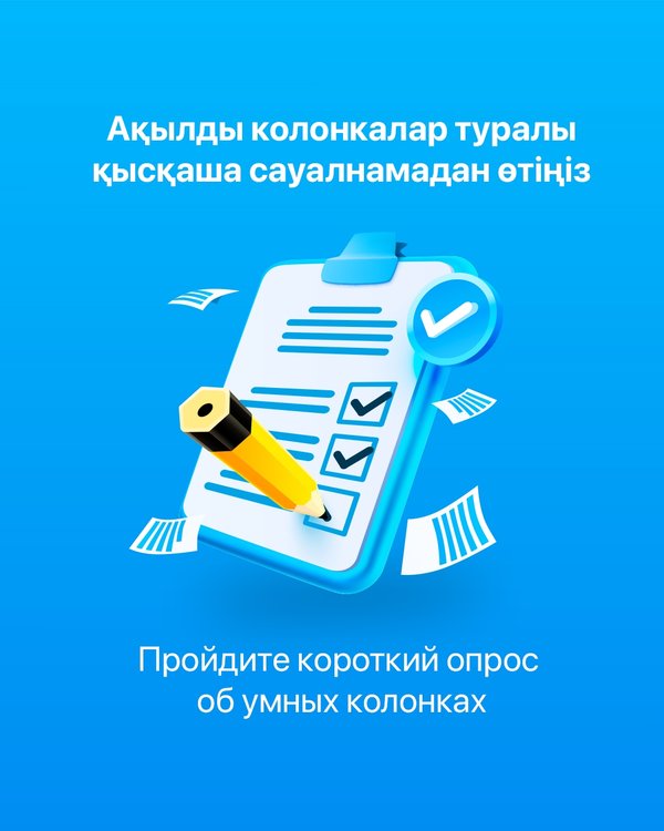 Ақылды колонканы одан әрі жақсартуға әсер еткіңіз келе ме? Онда қысқа сауалнамадан өтіп, дауысыңызды одан да әсерлі етуге қолдау көрсетіңіз! Пікіріңіз біз үшін маңызды. Сілтемені басып, сауалнамаға қатысыңыз Жауап бергеніңіз үшін рақмет! ▪▪▪ Хотите повлиять на будущее умных колонок? Пройдите наш короткий опрос и помогите нам сделать ваш голос еще громче! Ваше мнение важно для нас. Переходите по ссылке и участвуйте Спасибо за ваши ответы!