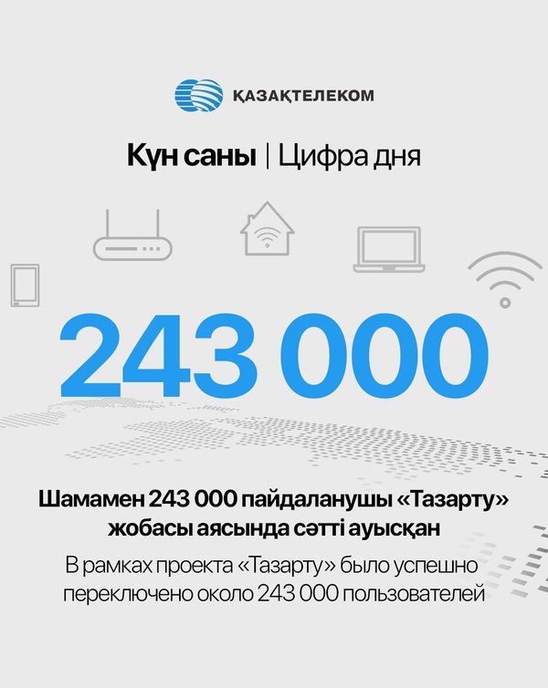 В сентябре «Казахтелеком» запустил масштабный проект «SAPA+», направленный на значительное улучшение качества услуг по всему Казахстану. Цель проекта — обеспечить стабильное и высокоскоростное подключение к сети для каждого клиента. В рамках «SAPA+» каждому пользователю услуг будут бесплатно установлены современные усилители, что позволит избавиться от проблем с сигналом и улучшить клиентский опыт. До конца года многие клиенты смогут ощутить все преимущества обновлённой сети!
