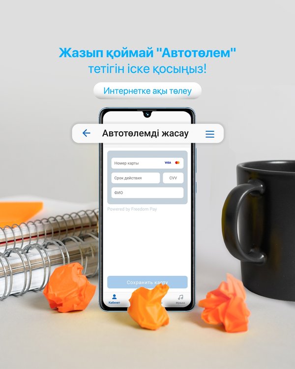 для автоматической оплату услуг телекоммуникаций. 1⃣ В приложении telecom kz нажмите кнопку «Оплатить» 2⃣ Выберите «Создать автоплатёж» 3⃣ Далее настройте условия автоплатежа 4⃣ Привяжите банковскую карту Автоплатёж настроен