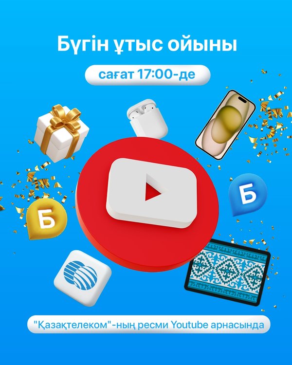 Сілтемеге өтіп, біздің парағымызға жазылыңыз ▪▪▪ РОЗЫГРЫШ призов СЕГОДНЯ в 17:00 на YouTube-канале «Казахтелекома»! Ставьте напоминалки в календаре!