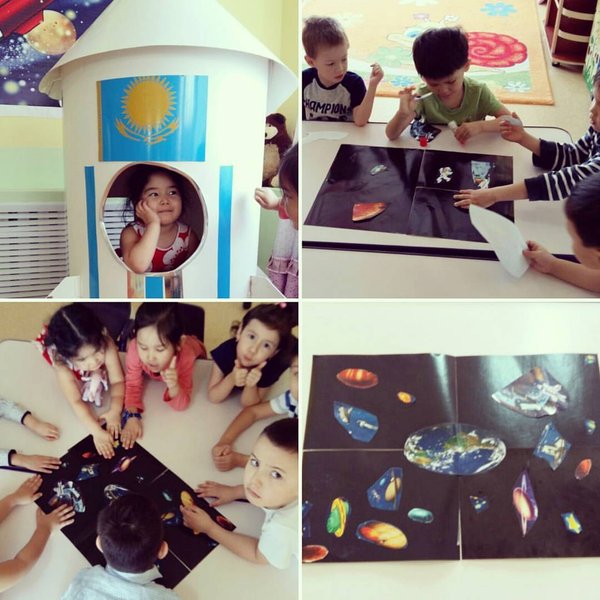 Ср. группа Негыштер на прошлой неделе изучали мир космоса!Сказка по теме «Ғарышқа саяхат» и работа с аппликацией «Ғарыш аспаны»