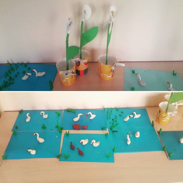 Творческие работы средней группы «Негыштер». 1. Цветы на 8 марта 2. Перелетные птицы