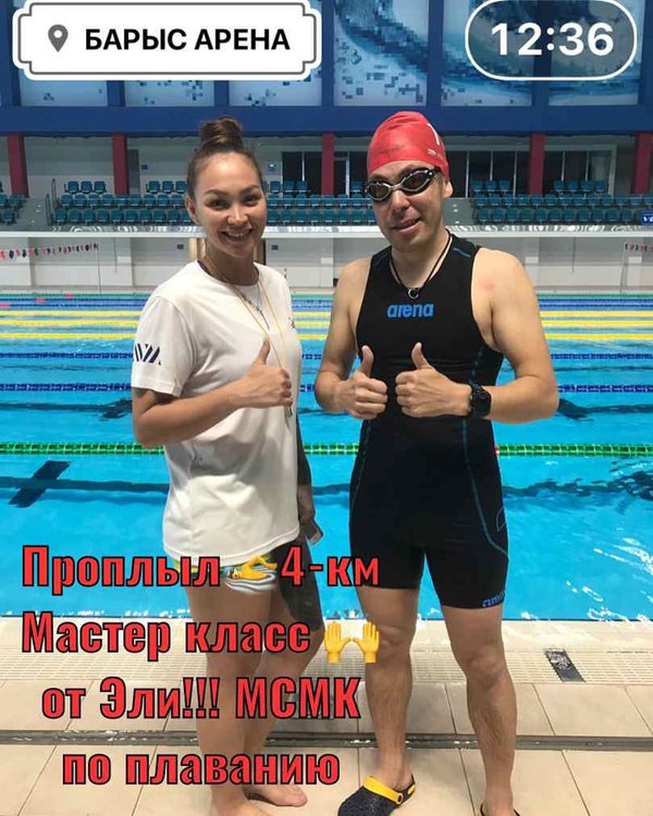 Сегодня впервые проплыл 4-км в бассейне Барыс Арена Прошёл мастер класс у Эли! elya_energizer МСМК по Плаванию! Абсолютная чемпионка по Плаванию в Казахстане! С благодарностью! Много лайфхаков по Плаванию узнал классно Готовимся к старту triathlonorgkz Кубок Мира по Триатлону в Астане Старт через 2 недели! Затем совсем скоро 44 дня до старта ironman703astana Ironman 70.3 Astana 2019 совсем скоро! Готовимся! Тренируемся!