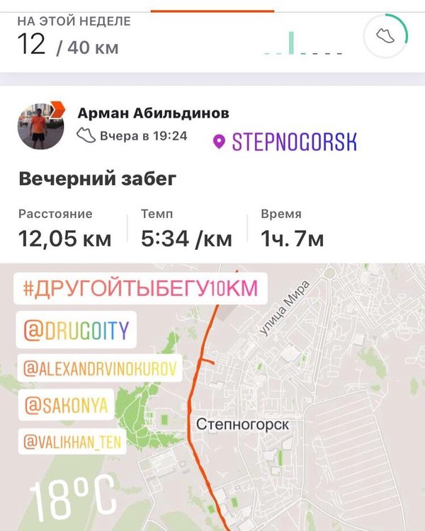 Отлично сегодня побегал с alex_sidorenko_im Алексей Сидоренко Ремстрой-директор Ironman 70.3 Astana, 11-финишировал на Ironman. Много лайфхаков, много полезной информации узнал, про триатлон и айронмен. С благодарностью alex_sidorenko_im Тренируюсь с тренером по триатлону, МСМК по Триатлону asikei Аслан Абдрахманов, с благодарностью за ваши труды! Готовимся к старту World Triathlon Olympic Astana 2019 triathlonorgkz Готовимся к старта Ironman 70.3 Astana 2019 ironman703astana