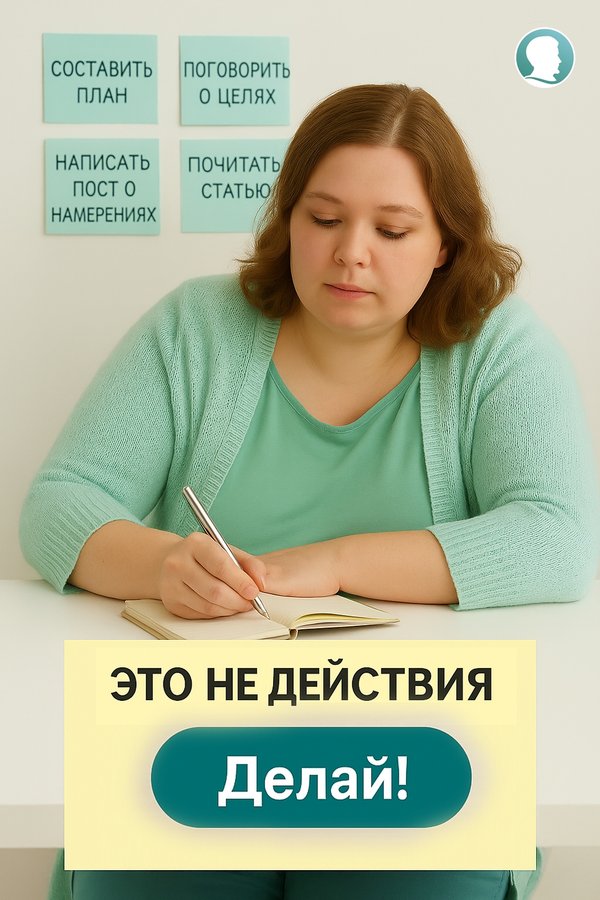 и съесть Поругать себя за всё Правильный ответ — только № 3. Всё остальное — умно замаскированная прокрастинация, от которой устаёшь, но не меняешься. Карточки‑ловушки, которые стоит заметить: Готовиться — не значит делать Писать о целях — не значит идти к ним Читать про успех — не значит приближаться к нему Ненавидеть себя — не мотивация, а самосаботаж (Это как репетировать пробежку, лёжа на диване в кроссовках.) Ложные действия — как отчёт без дела: много букв, умный вид, а суть — «я ничего не сделал, но звучит неплохо». Единственное, что значит делать — это делать. Вместо “расписать меню на месяц” — съесть нормальный обед сегодня Вместо “искать топ‑5 упражнений при весе 98 кг” — 5 минут разминки сейчас Вместо “читать про гормоны” — не заливать стресс конфеткой Это скучно. Это просто. Это и есть работающая стратегия. А теперь честно: Что у тебя прикидывается “делом”, но каждый раз уводит в сторону? Поделись в комментариях — без осуждения, просто по факту. Может, уже само это будет началом настоящего действия