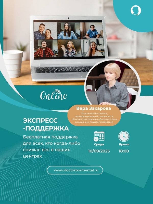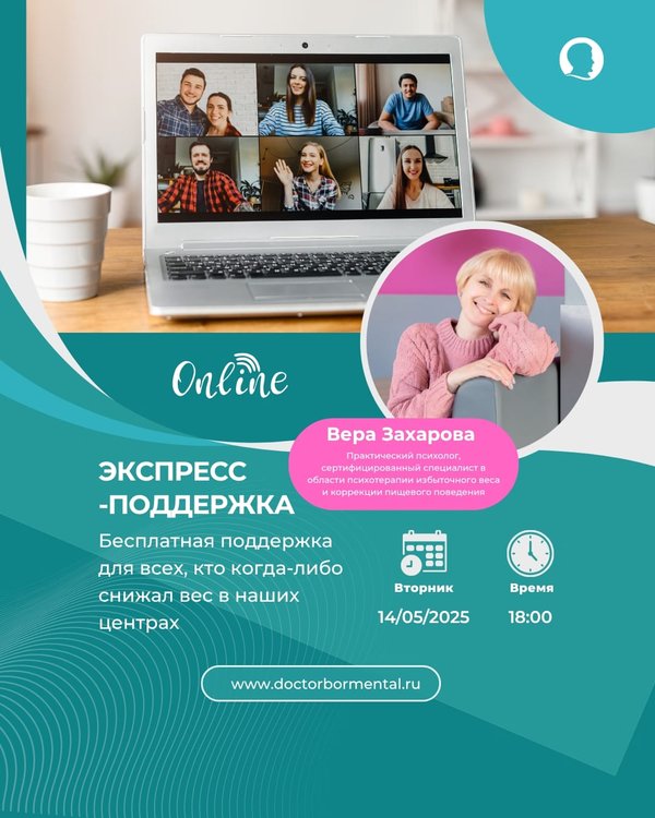 Иногда хочется сказать себе: «Я всё испортила, вес вернётся, смысла продолжать нет » А на самом деле вам просто нужна тёплая человеческая поддержка Мы приглашаем вас на онлайн «Экспресс-поддержку» с Верой Захаровой – практическим психологом и специалистом по снижению веса. Это встреча, где можно честно поговорить о срывах, плато, усталости, тревоге из-за веса – и вместо чувства вины получить понимание, спокойствие и реальные шаги, что делать дальше. Если вы когда-либо снижали вес в наших центрах и сейчас чувствуете, что опора пошатнулась – пр… — Читать дальше