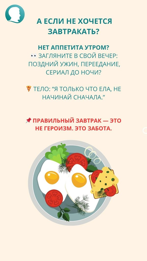 до “когда появится аппетит”, скорее всего, ваше тело уже ест… само себя. Или планирует ограбить холодильник к вечеру. Второе — из чего состоит завтрак? Не из “что осталось после детей” и не из “я съела воздух и чувство вины”. Нужны три опоры: Клетчатка — овощи, цельнозерновые, ягоды. Она как добрый охранник: пропускает еду медленно, не пуская сахар на дискотеку. Белок — яйца, творог, рыба, растительные источники. Он даёт насыщение и говорит: “Погоди с булочкой, мы сыты”. Углеводы — сложные! Гречка, овсянка, киноа, пшено, перловка, цельнозерновой хлеб. Если их нет утром — почти гарантированно потянет на сладкое вечером. Потому что мозг помнит, что не получил своё “топливо”, и требует шоколадную компенсацию. Третье - еда, а не перекус. Завтрак — это не “протереться кофе и выжить”. Это основа. Как фундамент у дома. А вы ведь не хотите жить в шалаше на сахаре? Если у вас нет аппетита утром — проверьте, что вы делали вечером. Поздний ужин? Переедание? Стресс? Тогда не удивляйтесь, что завтрак — не в радость. Итак: Встали Выпили воду Подвигались И через 30–40 минут — вкусный, сбалансированный завтрак. И да — вы имеете право есть с утра. Даже если не “заработали” еду. Потому что еда — это не награда. Это забота. Хочешь, чтобы завтраки стали твоим секретным оружием в борьбе с вечерними срывами, лишним весом и усталостью? В нашей программе ты не просто узнаешь, что есть на завтрак, — ты выстроишь систему из 25 полезных привычек, которые дают энергию, снижают вес и возвращают контроль над телом и головой. Это не «похудей к отпуску» — это «живи легче всю жизнь». Ты научишься: — готовить вкусно и сытно без переедания — понимать, откуда берётся тяга к сладкому — перестать сорваться, когда «всё бесит» — и наконец почувствовать, что ты рулевой, а не еда. Хочешь узнать, как это работает и подходит ли тебе? Приходи на бесплатную диагностику — и сделай первый шаг осознанно. Жми на ссылку и запишись — это просто, но может изменить всё: