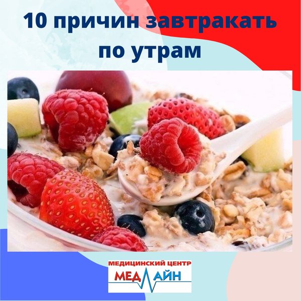 те и принимайтесь за работу. Знайте, что вы создали себе запас энергии, которая повысит вашу работоспособность на 30%. 5. Для активации организма. Не думайте, что вы поправитесь, если будете употреблять утром дополнительные калории. Наоборот — чем раньше вы позавтракаете, тем раньше ваш организм проснётся и начнёт работать. Утренние калории никогда не превращаются в жир, а расходуются без остатка. 6. Для энергии. Когда вы полдня ничего не едите, то лишаете себя энергетической подпитки. 7. Для контроля над голодом. Американские специалисты утверждают, что если позавтракать яйцами, в течение дня проголодаешься не так сильно и, как результат, будешь меньше есть. Если же позавтракать рисом, гречкой или овсянкой, то в течение дня будете меньше есть жирного. 8. Для красоты. Если вы не завтракаете, то не даёте проснуться обменным процессам и ваш организм, вместо того, чтобы активно взяться за работу по расщеплению жиров, откладывает всё на «потом». Именно поэтому вы и поправляетесь. 9. Для того, чтобы начать делать зарядку. Но как же заставить себя завтракать с утра пораньше, когда ещё спать хочется? А вы постарайтесь выработать для себя и своей семьи специальную схему питания. Например, после утренней зарядки или пробежки, организм и сам не откажется от чего-нибудь вкусненького, чтобы восполнить израсходованные калории. 10. Завтрак поднимает настроение. Ничто так не поднимает настроение с утра как вкусный завтрак. Кроме того, утренняя трапеза в спокойной обстановке помогает собраться с мыслями и настроиться на предстоящий день. Наши двери открыты для Вас в будние дни с с 08:00 до 20:00, в субботу с с 08:00 до 14:00, в воскресенье — выходной. ⠀ Мы располагаемся по адресу: г.Нур-Султан, ул.Кумисбекова 8, ВП-20. ⠀ Запись по тел: 23-72-72, 23-60-77,, ⠀